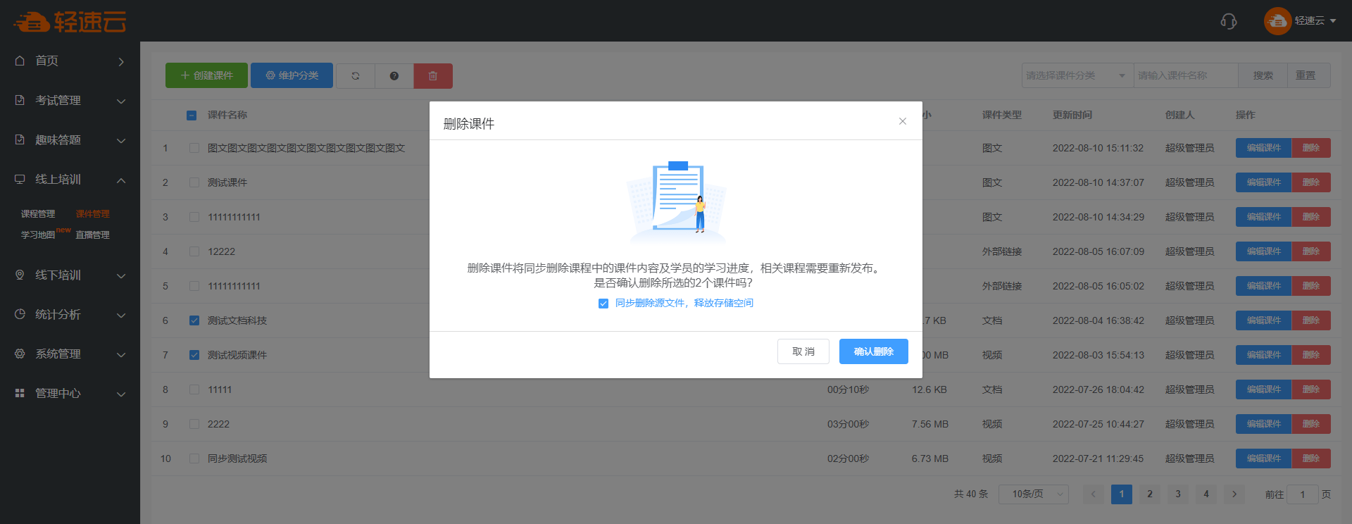 删除知识仅为在列表中删除信息,不会删除该知识对应的原始文件(如上传的文档、音视频等)。若需删除原始文件,请勾选 同步删除源文件 。