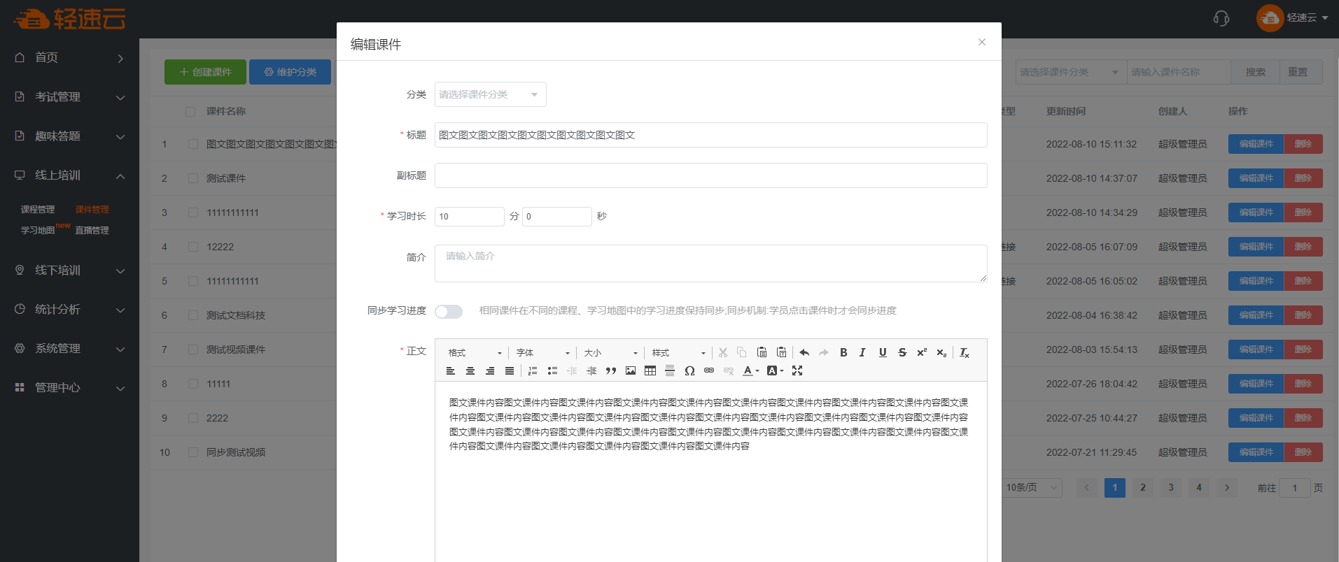 通过在线编辑的形式,使用系统提供的富文本编辑器来完成图文知识的编辑。在功能允许的范围内,图文编辑没有任何限制。
