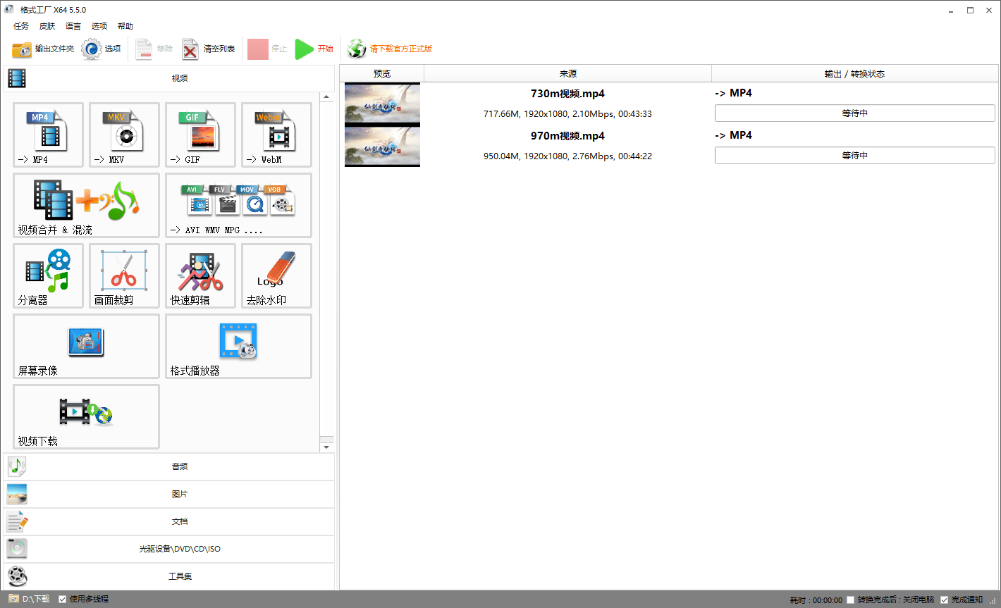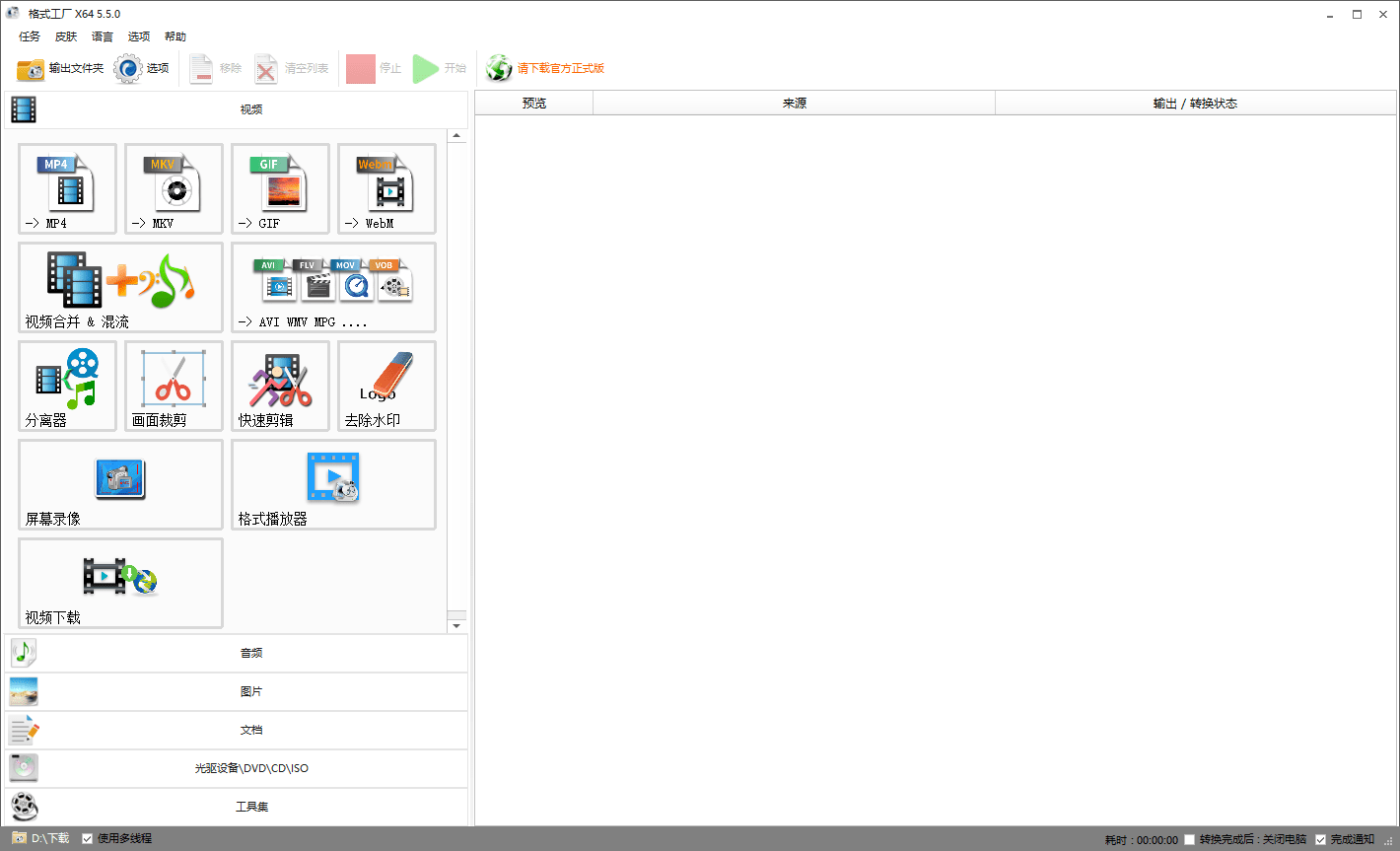 下载安装 格式工厂 ,打开软件的主页面如图所示。