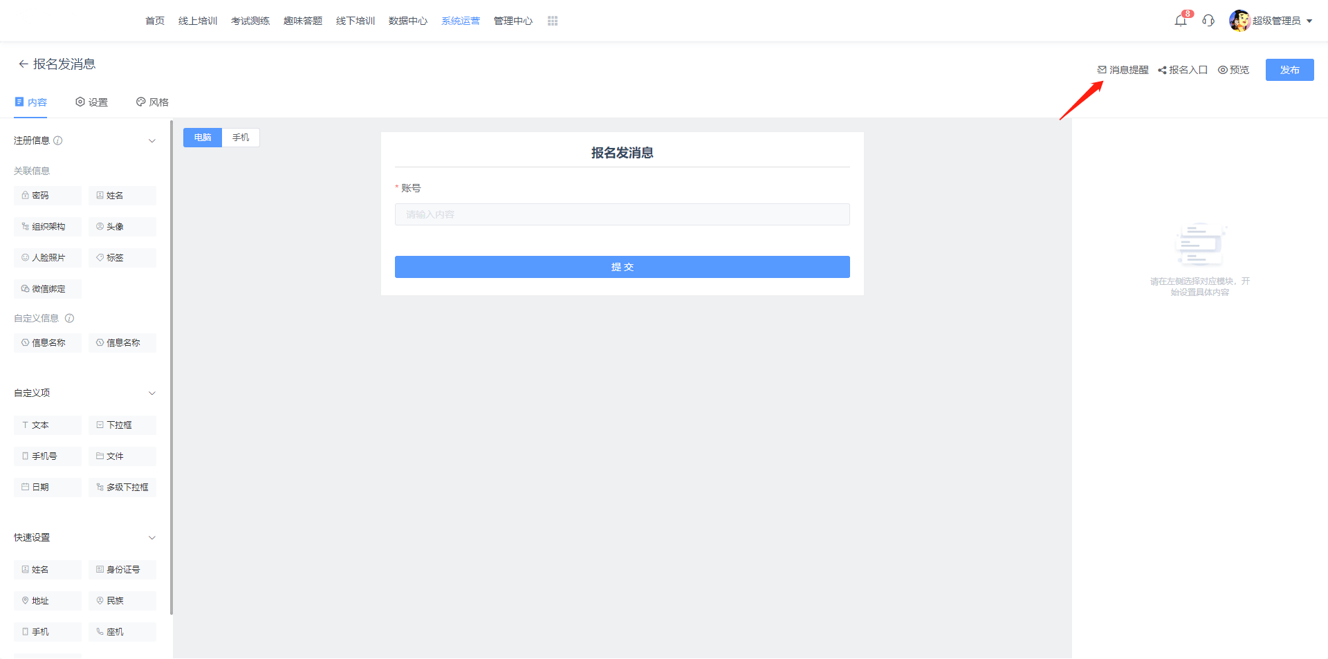 在报名风格页能够设置报名的页面样式,包括电脑端与手机端。