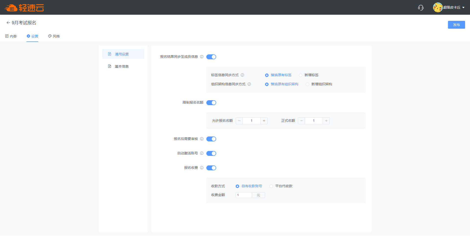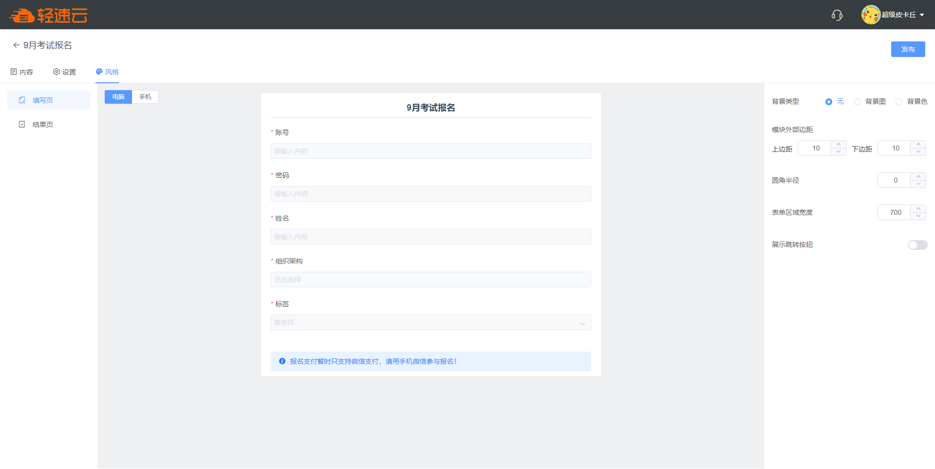通过风格设置,能够自由调整报名填写页面与报名结果页面的样式。