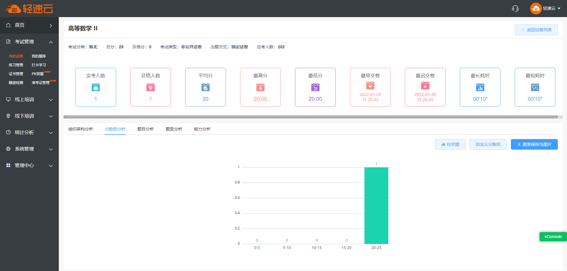 在试卷列表页点击 统计分析 按钮,会进入到试卷分析页面。