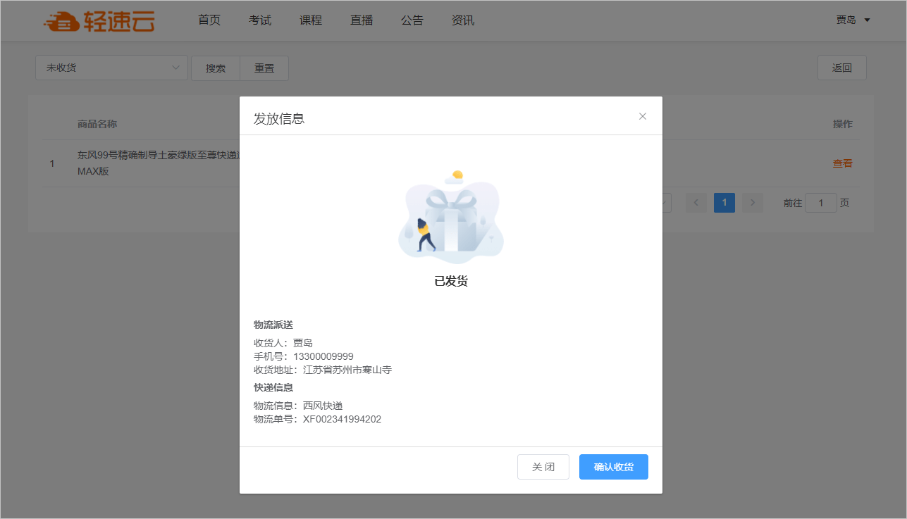成员通过快递公司收到商品后,点击 确认收货 后,管理端商品的发放状态会自行变更。