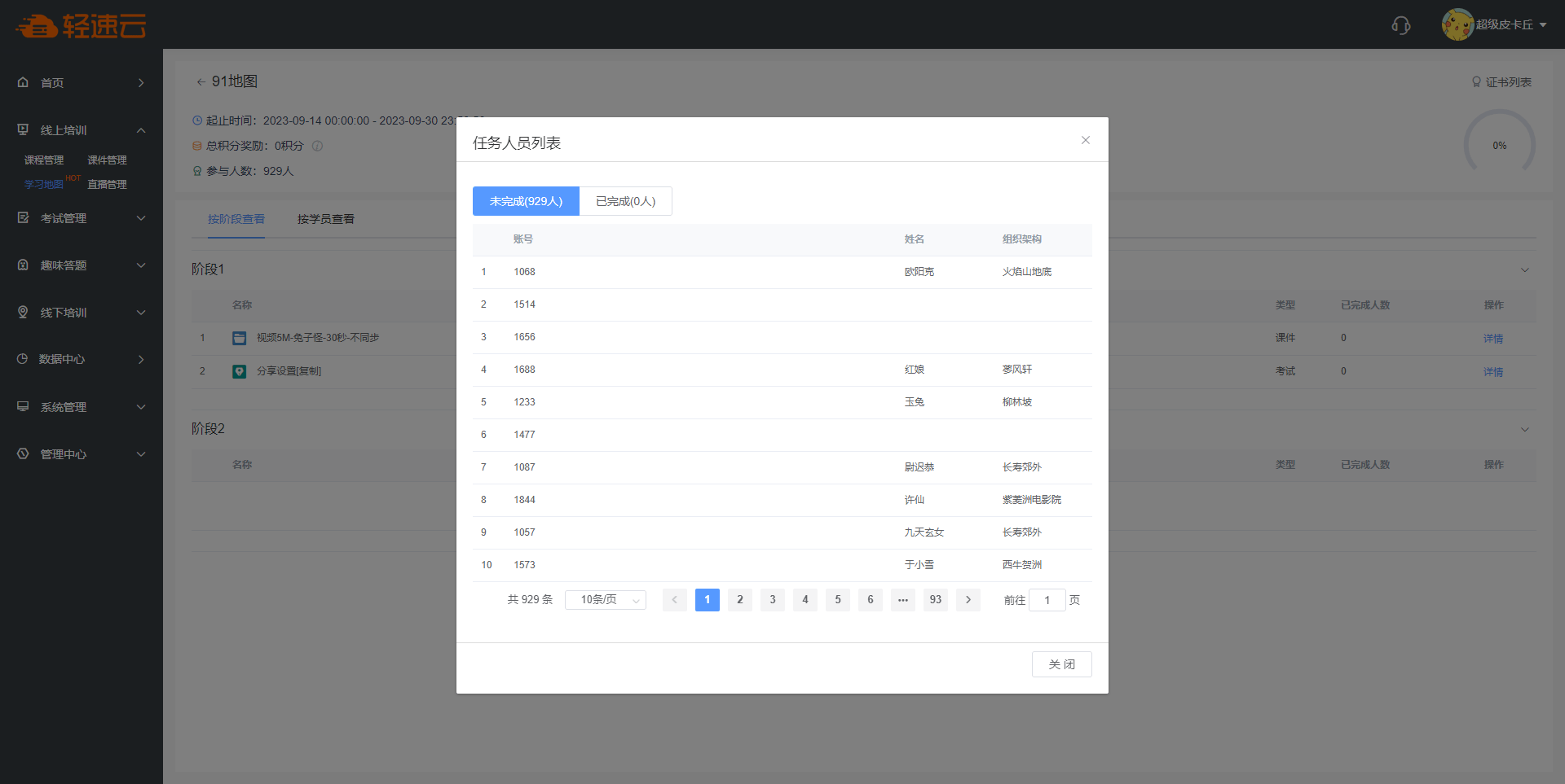 在完成学习地图的所有学习任务时,系统会根据完成时间对每个学员进行排名。