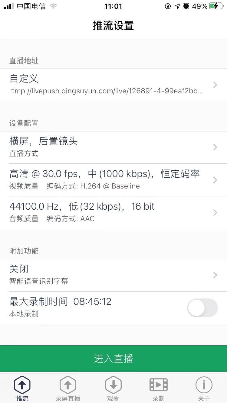 移动端推流与pc端类似,下面以 易推流(ios) 为例简单介绍移动端直播流程。