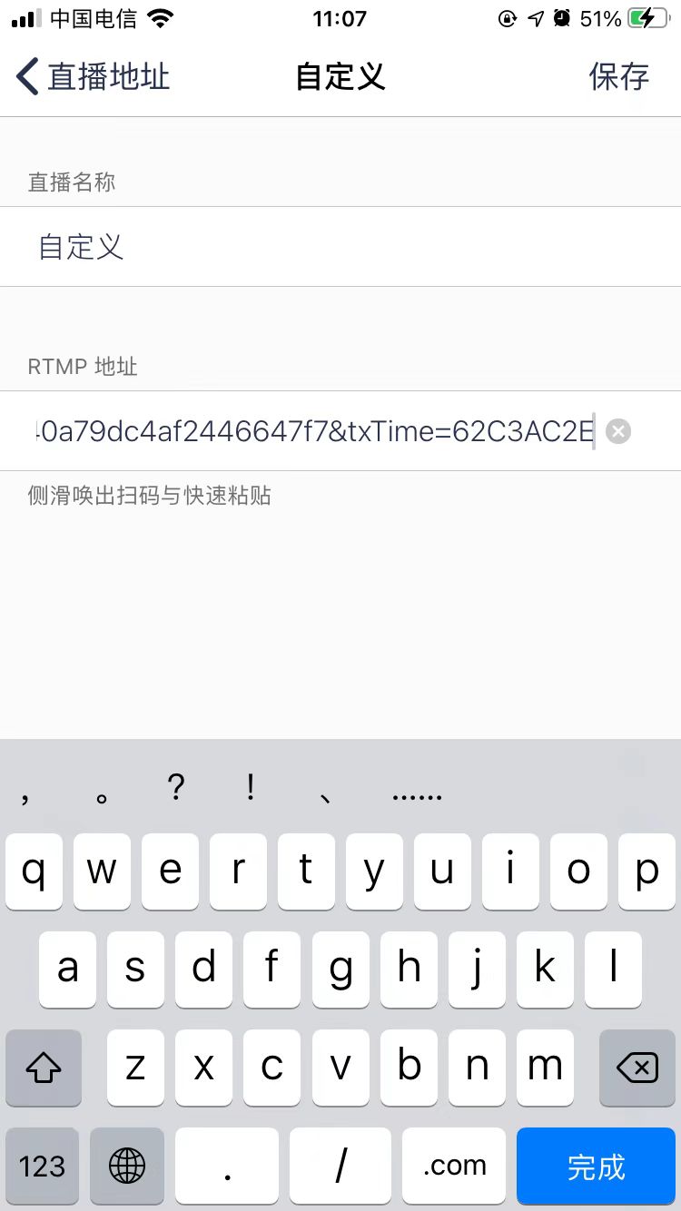 与obs不同,这里的推流地址需使用完整的推流地址,保存后即可进行推流。