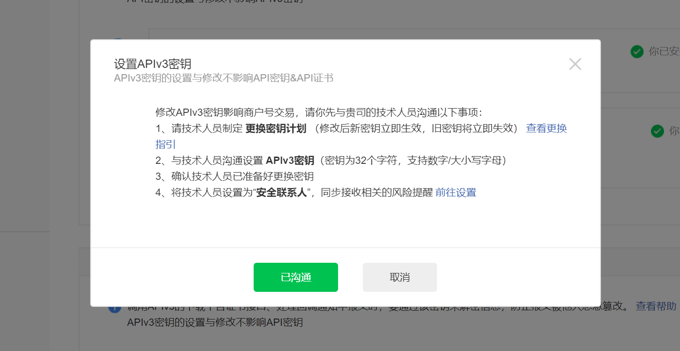 在API密钥栏目下,获取 APIv3密钥 信息。