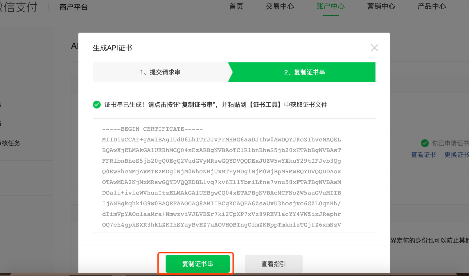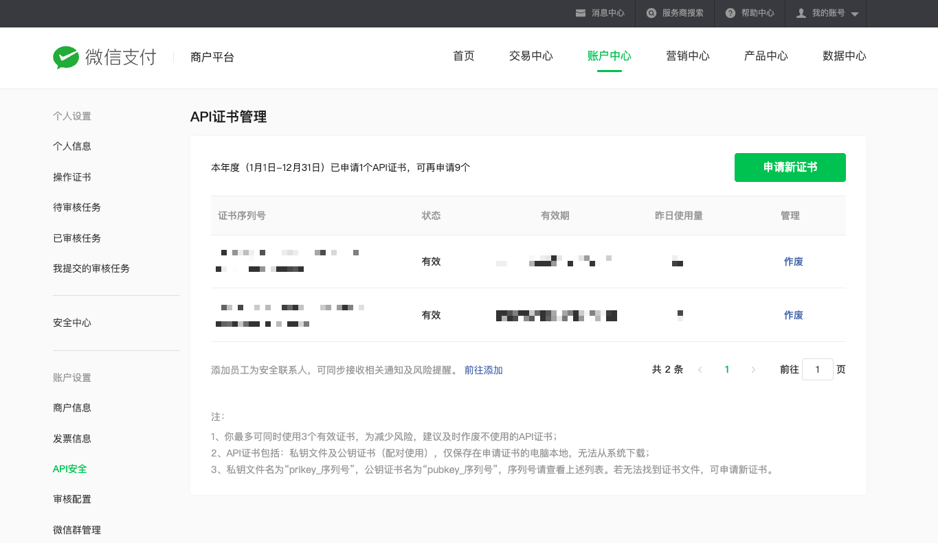 在证书管理页面会呈现API证书的序列号,将对应的序列号填写到kaiyun体育官方网站手机网管理后台。