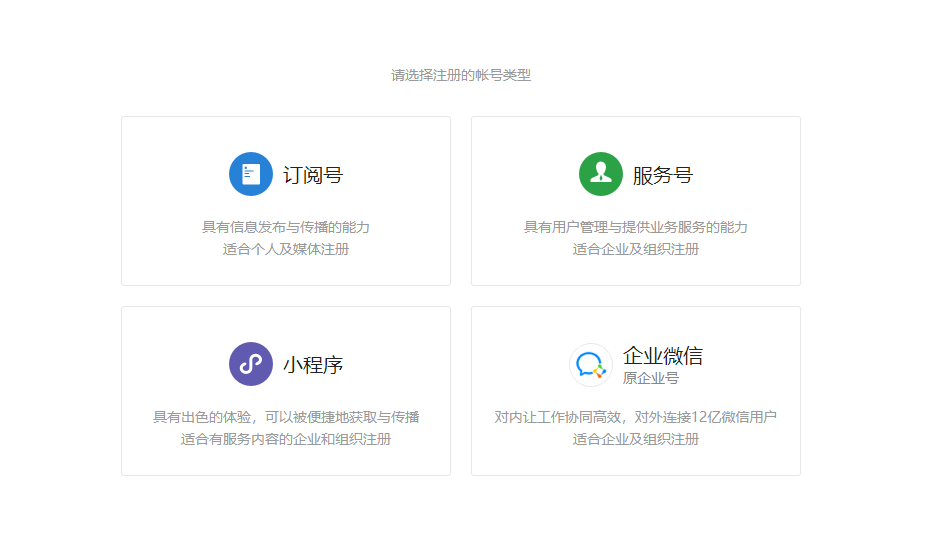 如果您还没有微信公众号,可参考下面的流程进行注册。