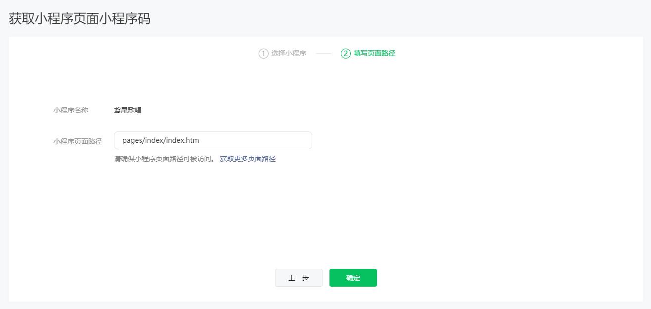 此时可使用该微信号在微信小程序中搜索您的小程序名称以进入对应小程序,复制小程序的页面路径,并将路径复制过来,点击 确定 ,可以生成小程序码。