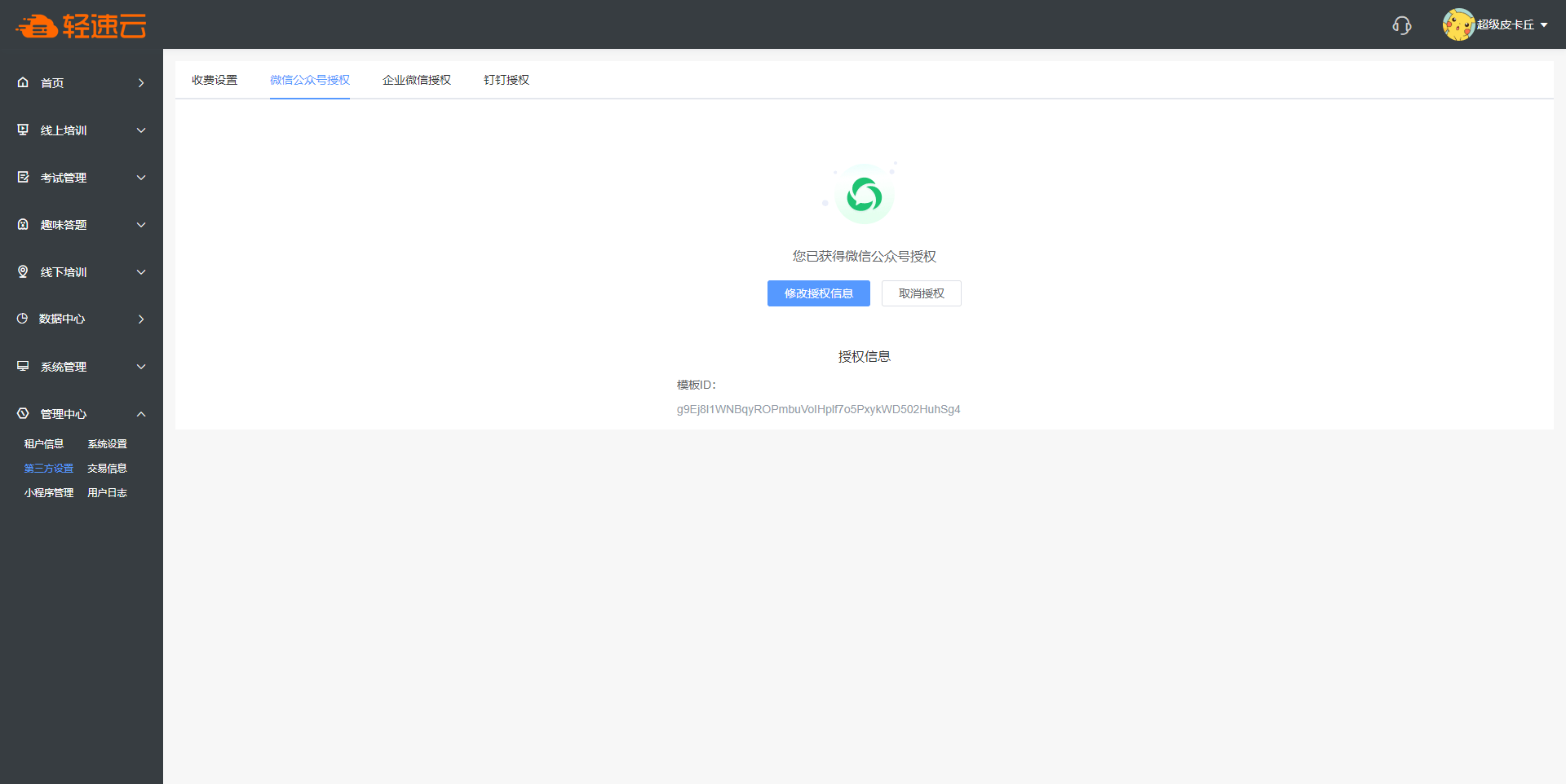 拥有微信公众号信息并完成授权绑定后,您可以通过微信公众号向成员推送考试、课程等消息通知。