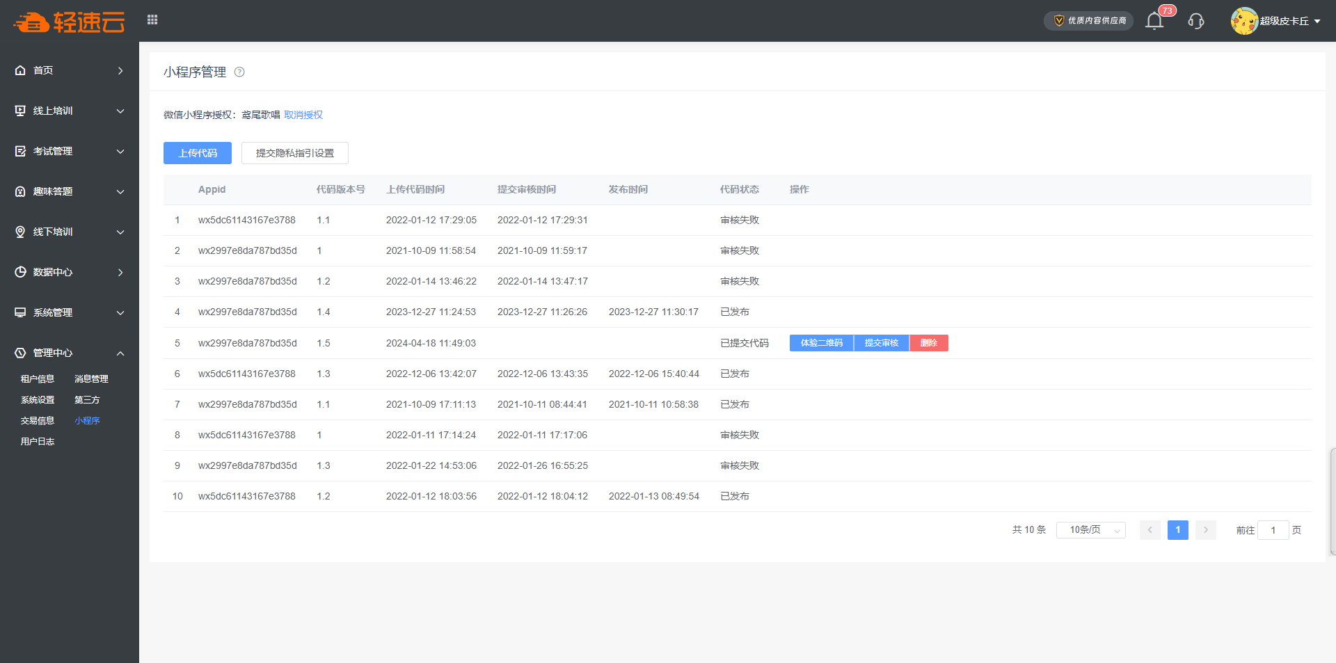 如果使用的收费场景为 小程序 ,请先通过 小程序管理 成功绑定并发布小程序。